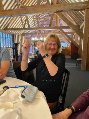 We all raced back to Ware by 12.20. I then raced home. We got to the club lunch and Claire won shed loads of medals. Carolyn won a medal for 62 points, wondering why they had put her age on the back of her medal. We all laughed like drains.